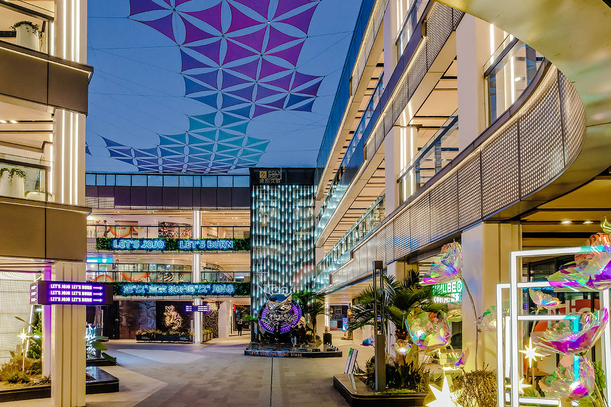 “久”和喝酒的“酒”諧音,代表微醺夜經(jīng)濟(jì);jojo就是enjoyment,代表這里能夠為大家?guī)砜鞓?。項目本身具有非常明確的情緒定位和個性屬性——“快樂”,而我們要做的事情正是通過場景設(shè)計的力量精準(zhǔn)的為我們年輕消費(fèi)客群提供快樂的情緒價值,得到消費(fèi)者的認(rèn)同與共情。