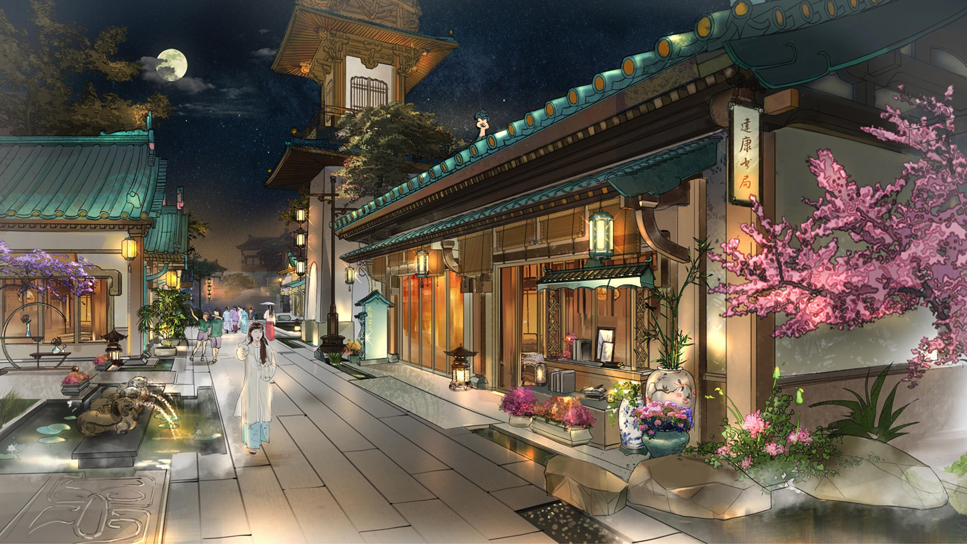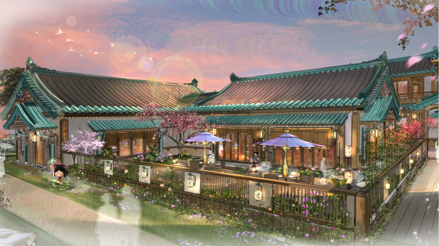 拈花灣文旅以當(dāng)下審美需求解讀傳統(tǒng)文化,搭建起浸入式體驗傳統(tǒng)文化的載體,為中華文化提供源源不斷的生命力。由拈花灣文旅傾力打造的南京·金陵小城,在央視鏡頭下,線條流暢的琉璃屋檐,錯落有致的亭臺樓閣,尤其是獨(dú)具特色的“金陵藍(lán)”格外醒目,盡顯金陵風(fēng)雅氣度。此次金陵小城的場景營造并非簡單的仿古堆砌,而是一場以空間為媒介的文化解碼之旅——通過將六朝美學(xué)基因拆解為“燈與石”“煙與水”“竹與花”三大符號系統(tǒng),再以當(dāng)代設(shè)計語言進(jìn)行轉(zhuǎn)譯重組,最終在虛實(shí)交錯的場景中重構(gòu)一個“既見古意,又見新生”的詩意場域。以調(diào)性為基準(zhǔn)確認(rèn)整體的色系,材質(zhì)、風(fēng)格等標(biāo)準(zhǔn);建筑本體的風(fēng)格強(qiáng)烈,按照本體肌理優(yōu)化、二次肌理提升的原則深化氛圍。