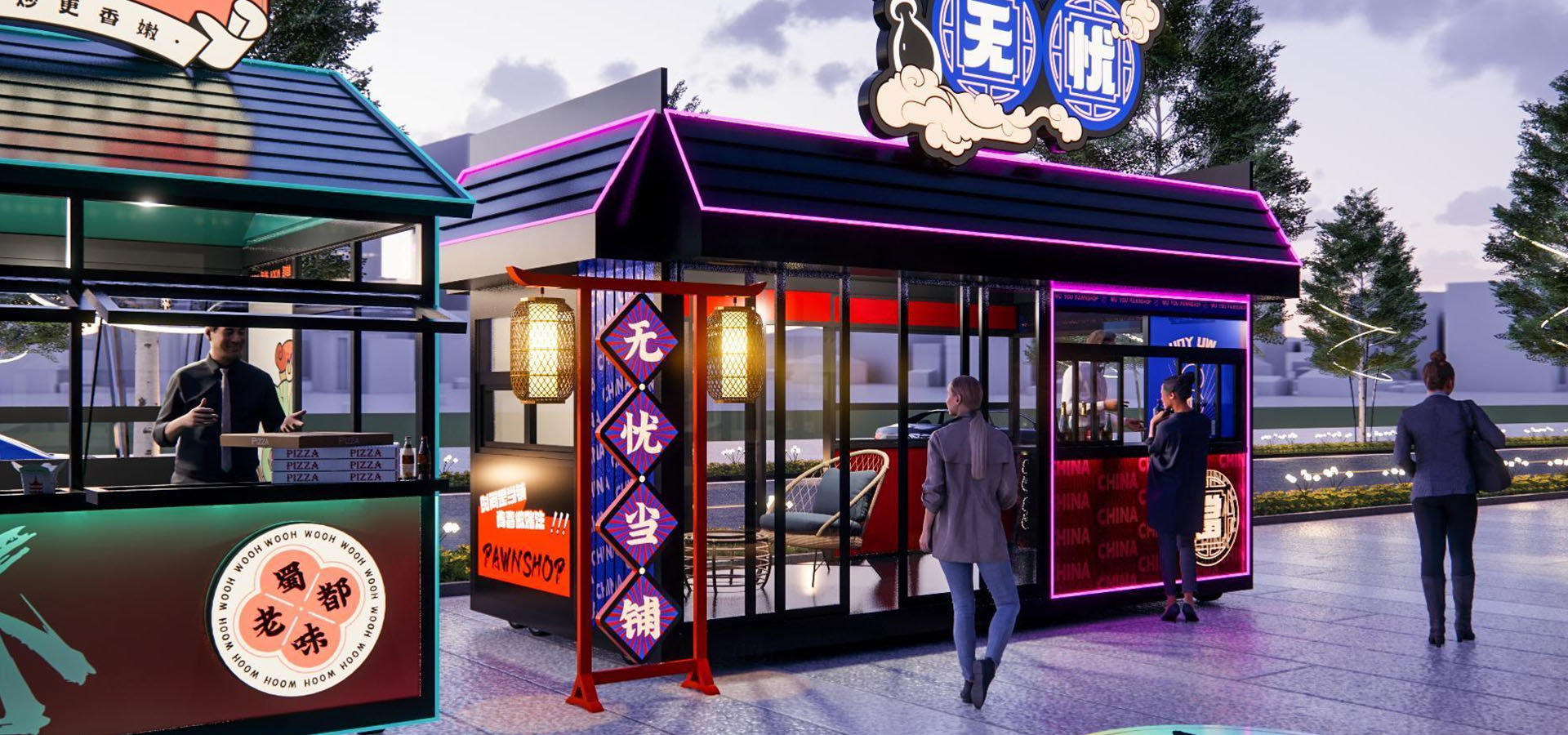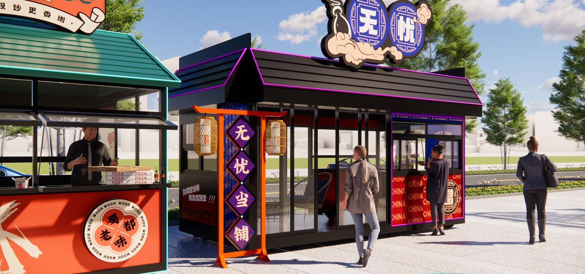 進(jìn)出水管、內(nèi)部吧臺(tái)、店招燈箱、皮膚設(shè)計(jì)